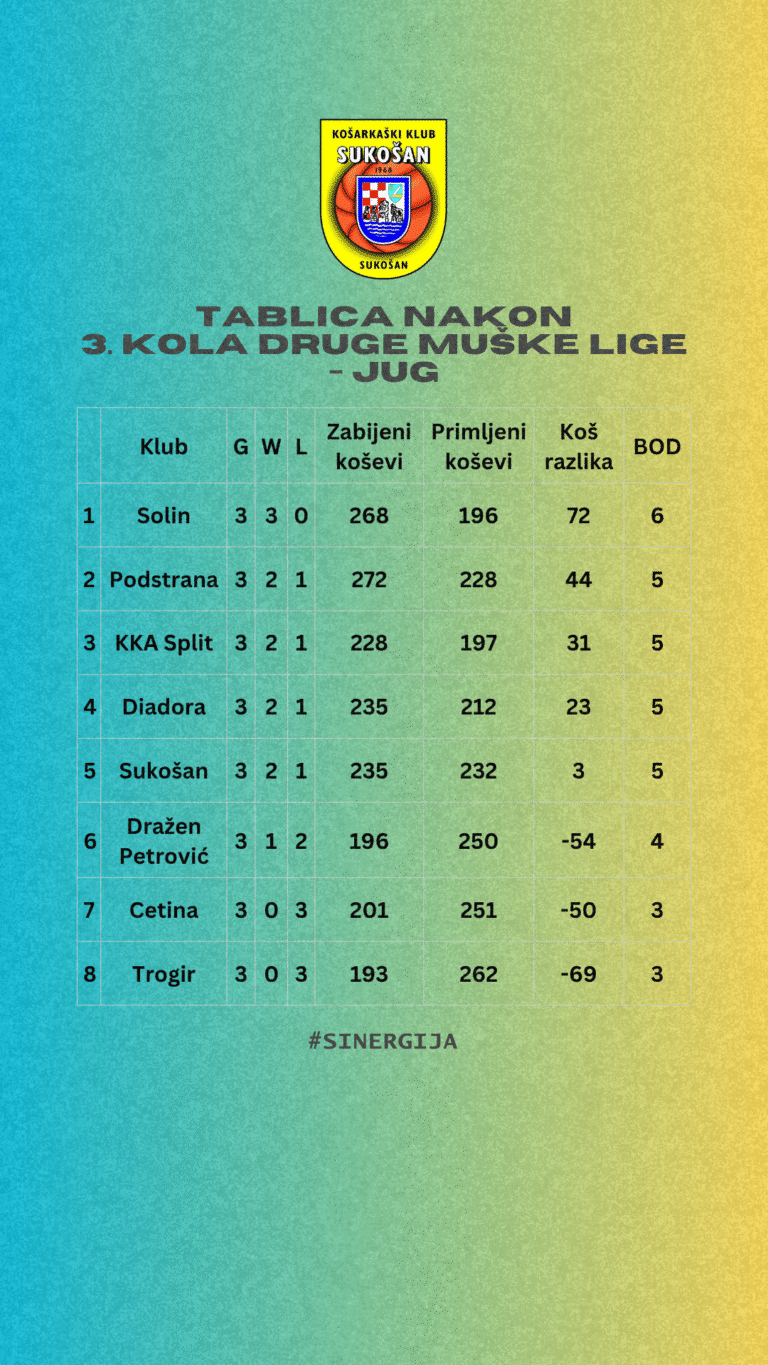 Nakon teškog poraza u prošlom kolu, košarkaši Sukošana pokazali su pravi karakter i na domaćem parketu upisali uvjerljivu pobjedu protiv momčadi Trogira rezultatom 90:71.